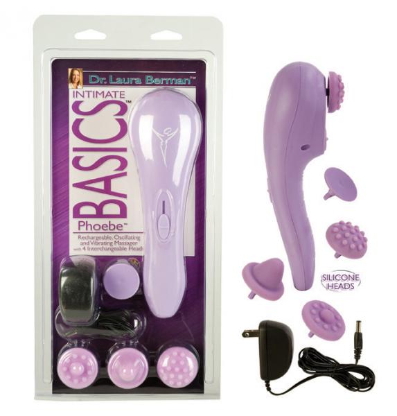 • Laura Berman, LCSW, PhD, is an assistant professor of psychiatry and obstetrics/gynecology at the Feinberg School of Medicine at Northwestern University. She has been working as a sex educator and therapist for 20 years, and is considered a leader in her field. Her latest book, “Real Sex for Real Women” is an international Best Seller. • The Dr. Laura Berman Intimate Basics Collection™ is designed by women, for women to give you and your partner exactly what you need; color, ergonomic designs, discreet packaging, superior quality, quiet and powerful devices. Dr. Berman personally writes instructions for each product. • Powerful rechargeable massager has an easy to use slide control that adjusts the extra wide pleasure disc for optimum oscillating and vibrating action • 4 interchangeable and versatile attachments that screw in for secure use • Holds a charge for over one hours use • Charger included • ABS (massager) Silicone (attachments) • 110/120 Volt AC • 9”x 2.75”/23 cm x 7 cm