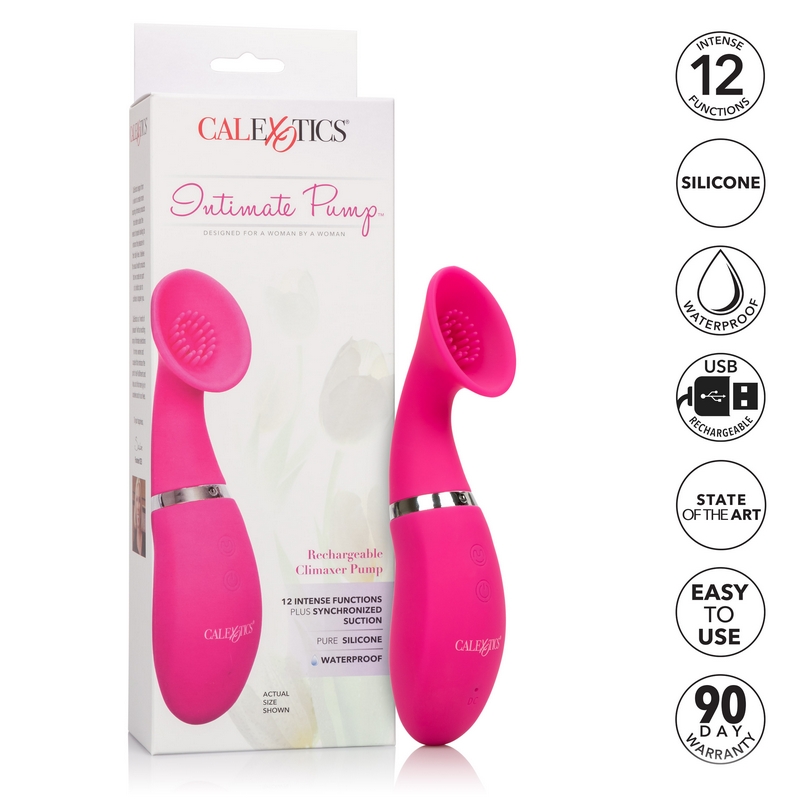 Sensually stimulate with the tickling and teasing Intimate Pump Rechargeable Climaxer Pump. With a soft intimate scoop, teasing ticklers and 12 synchronized vibration and suction functions, this lustful massager will send you spiraling into a wonderland of pleasure possibilities.