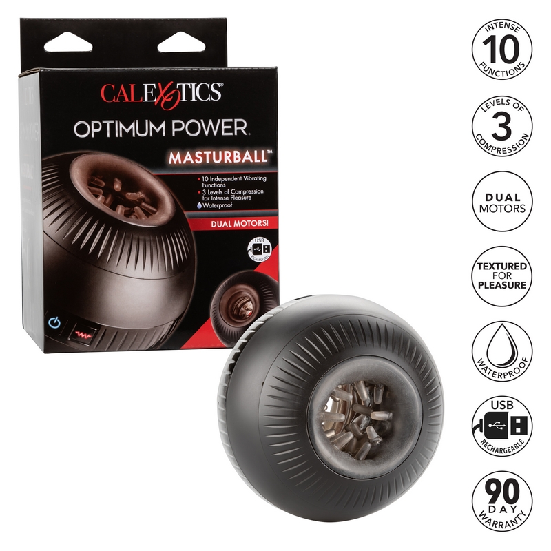 The Optimum Power® Masturball™ is a fully self-contained vibration power stroker packed with 10 functions of vibration, 3 functions of sensational compression and pressure sensitive tickler pads for a completely customizable stroking experience. Pressure sensitive squeeze pads customize tightness with every stroke, while the variety of functions tickle and tease you towards new climactic heights.