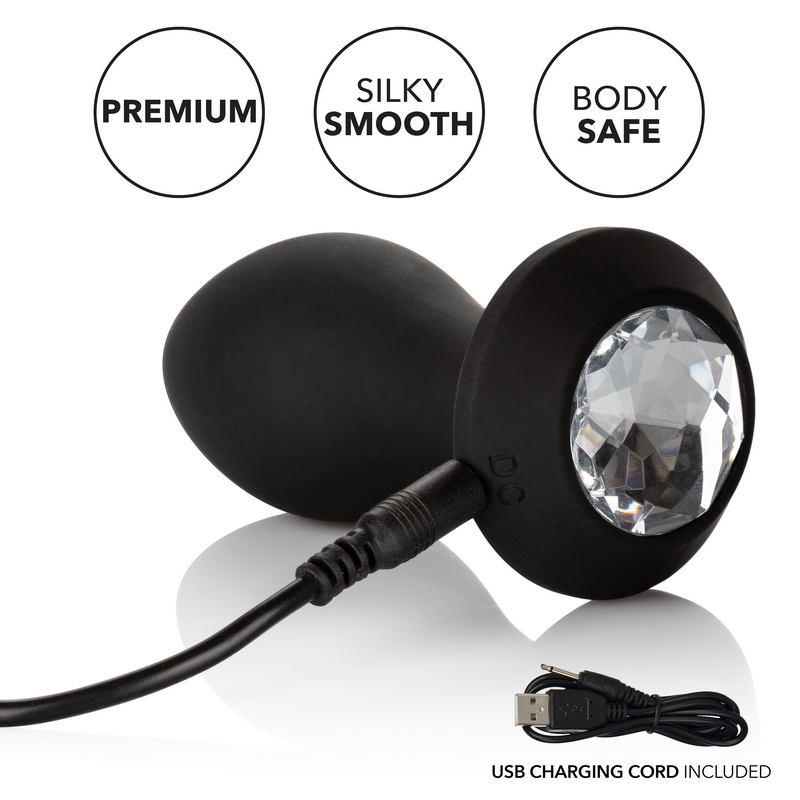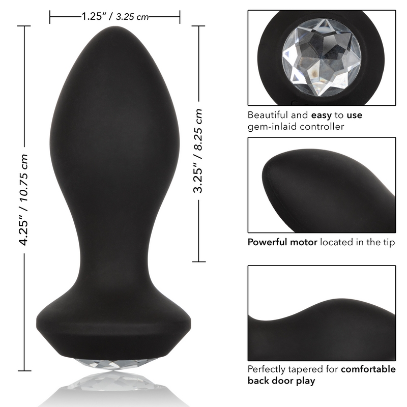 The Power Gem® Vibrating Petite Crystal Probe is a dazzling, flexible silicone probe created to ease you into thrilling anal pleasure. The pliable, ergonomic design and powerful vibe motors allow this probe to flex with your movements while delivering intense vibrations. Indulge in personalized pleasure while the sleek probe pulsates with 10 vivacious vibration, passionate pulsation and erotic escalation. Control this variety of orgasmic options with the easy-touch gemstone button.