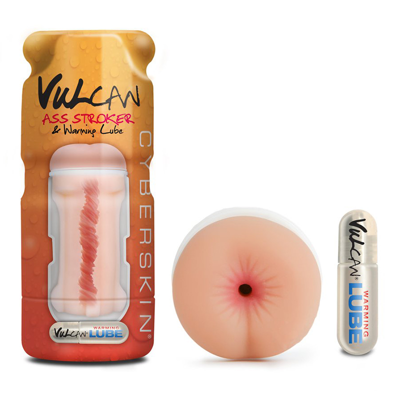 The Vulcan Ass Stroker and Warming Lube offers an authentic simulation of anal sex from its tight elastic opening to its finely ribbed snug sleeve. The gently warming water-based lubricant heightens sensations while the grip and pull of the textured tunnel coaxes users to a satisfying release. The extraordinary sensations of this masturbator also make it an effective stamina training tool, helping develop technique and staying power through use and practice. Cyberskin is a soft, durable material that lasts a long time and is easy to clean and care for. Simply turn the 100% waterproof sleeve inside out, wash with antibacterial soap and warm water, and dry completely after each use. Keep this stroker looking and feeling brand new with Renew Cyberskin Rejuvenating Powder.