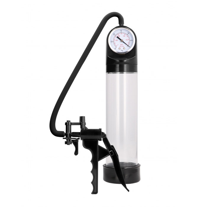 The trigger grip, gives more power than the traditional bulb pump. It will work to create a more effective vacuum seal in a shorter amount of time, so it will take less pump action to reach your desired level of hardness. It’s easier to maintain control over the amount of pressure in the cylinder and a cheaper option than a pistol grip pump. It also has a more comfortable grip than the ball mechanism. A pump with a gauge gives more control. This makes it more likely to avoid pumping at a higher vacuum level than you might have intended. Increase the vacuum level a little at a time, but never too much!. Pain or discomfort is not a reliable sign that you’re overdoing it. This can happen well before that!