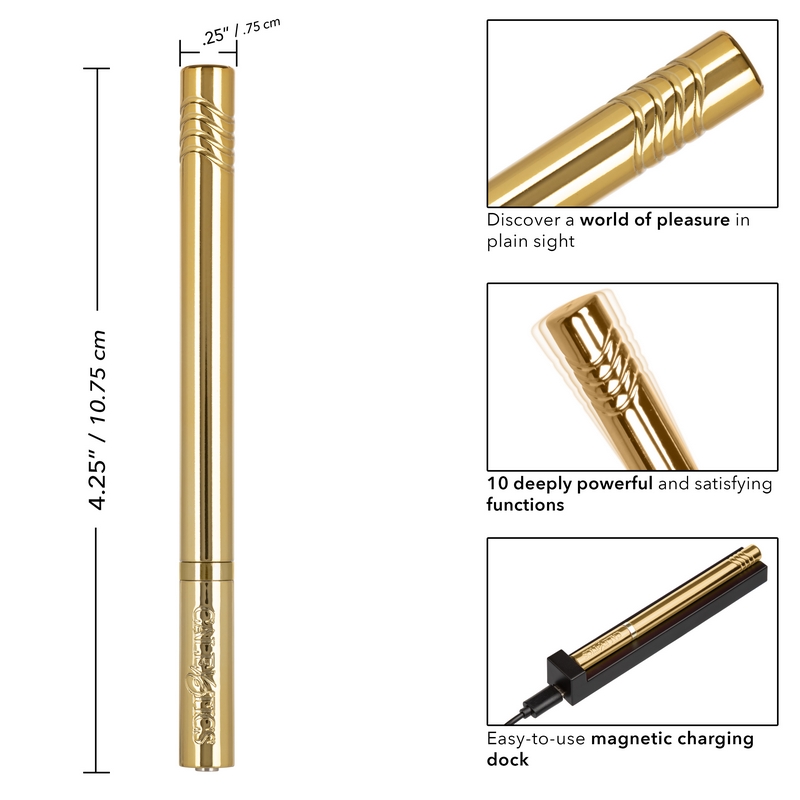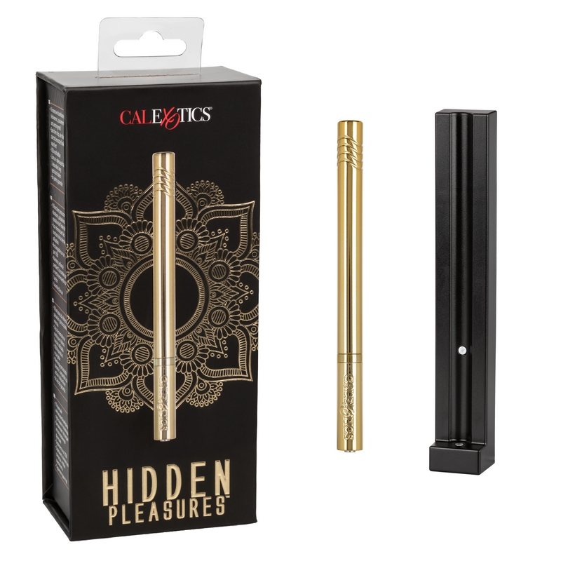 The passionate Hidden Pleasures™ bullet is a discreet bullet vibrator packed with 10 rumbling functions of vibration. Embrace passion wherever it takes you by slipping this brilliant metallic bullet into your purse or suitcase.
