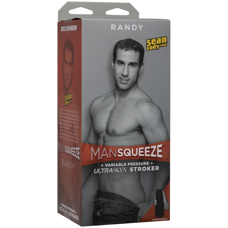 Versatile SeanCody superstar Randy joins the Man Squeeze lineup with a variable pressure hard-case stroker molded directly from his body. Handcrafted in lifelike ULTRASKYN, Randy’s Man Squeeze features a tight, textured interior that warms to the touch and feels just like the real thing. Play your favorite Randy scene and become his costar!