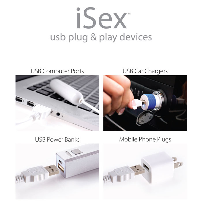 Give “plug-n-play” a whole new meaning with this incredible collection of portable USB-powered pleasure devices. All iSex travel accessories are easy-to-use, perfect for beginners, TSA-approved, and eco-friendly. There’s no need for batteries – just plug an iSex device into the USB port in your computer, car, or cell phone plug and you’re ready for fun! The super strong vibrations will tease and please, and best of all, no one will know your little secret. They’re great for college students, long distance video chats, solo stroking sessions, office rendezvous, road trips, and any other time you need plug-n-play satisfaction!