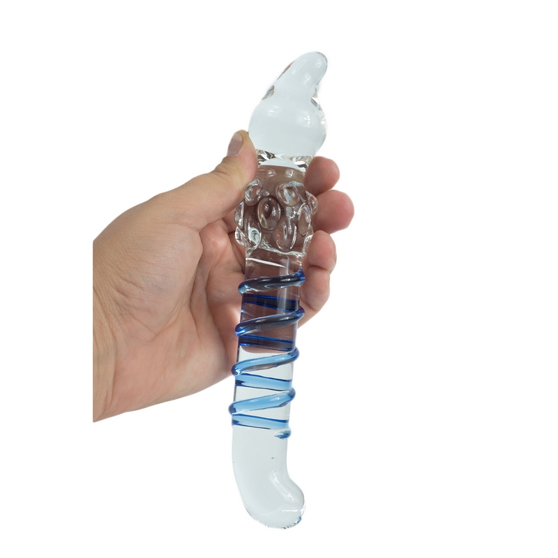 • Unique design pleases in 4 ways: angled G-spot tip, raised swirl on shaft, massaging bumps and a smooth, tapered tip